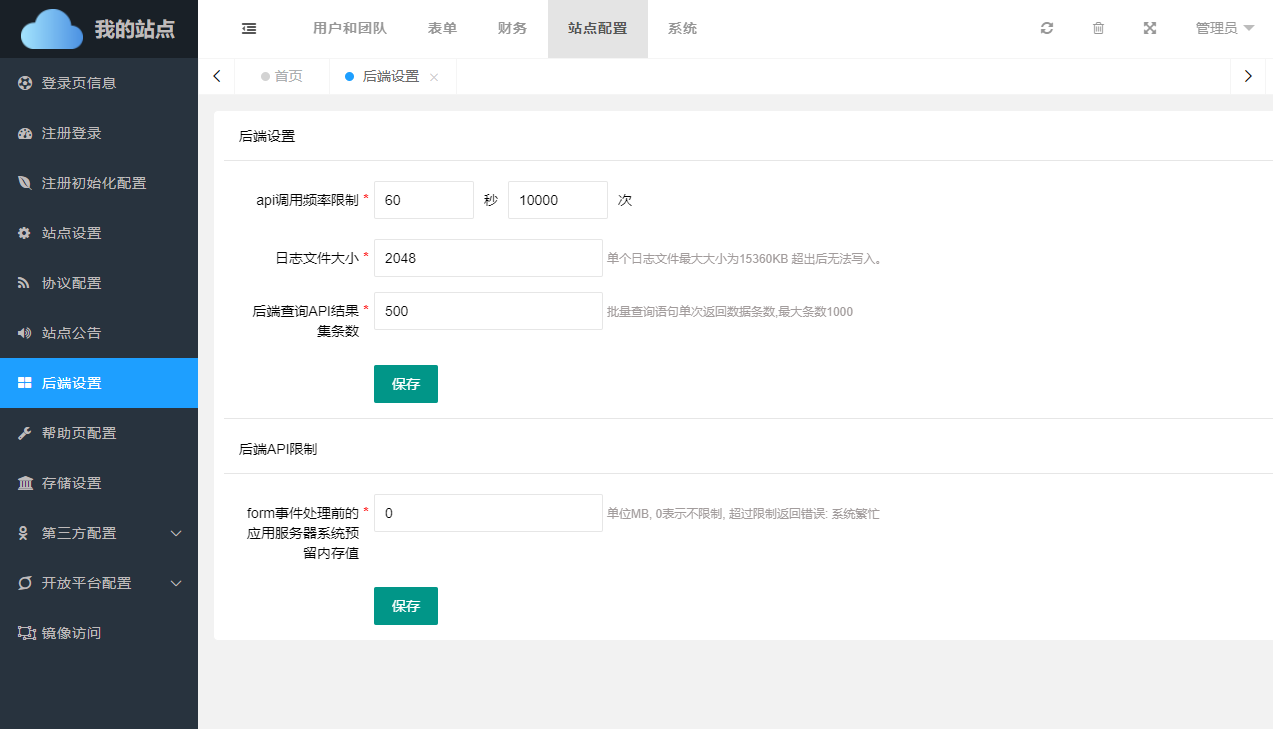 后端API的调用会消耗大量服务器资源,在本页面可以设置API调用的频率限制,避免服务器负载过高。