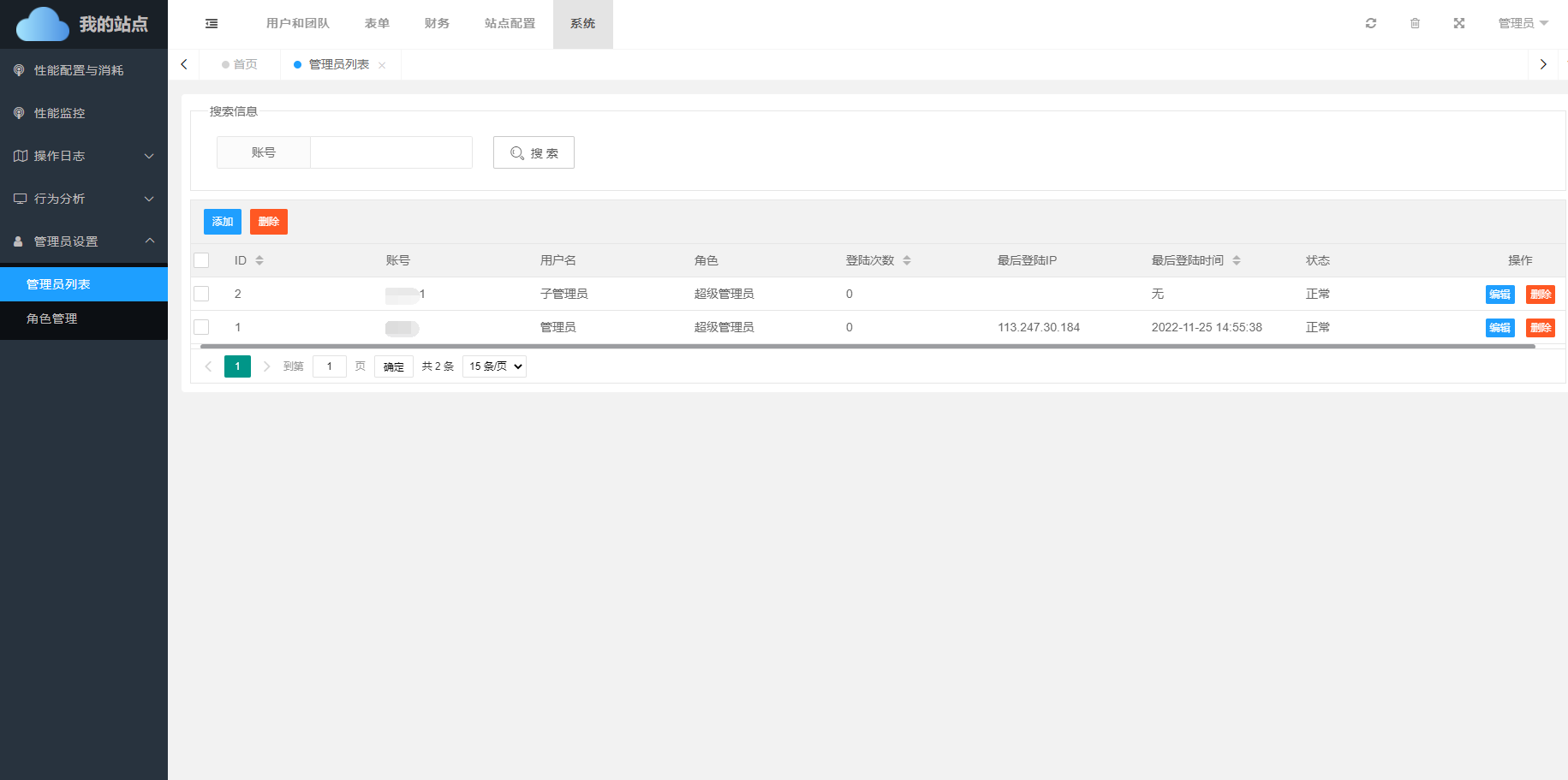 • 管理员列表