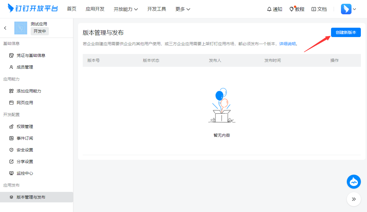 - 点击【创建新版本】