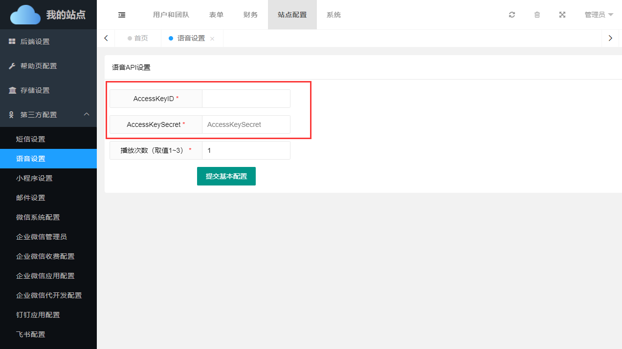 平台所使用的的语音功能,为阿里云提供的语音服务,使用此服务应该自行注册、自行续费。