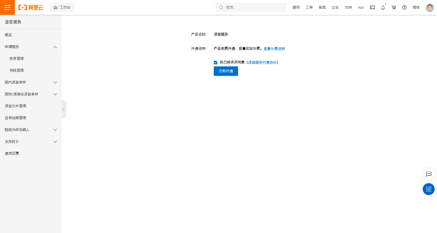 3. 开通语音服务。具体操作,请参见开通语音服务。
