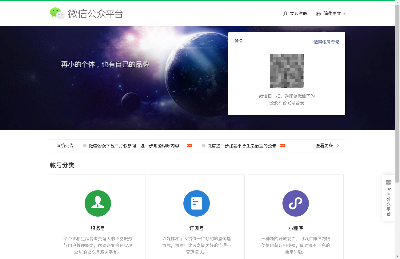 需要对接微信公众号,除了需要满足微信认证之外,还需要进行微信公众号授权,否则将无法正常和系统平台对接。\ 本篇教学从最基础的扫码授权到添加模板、添加自定义菜单做完整图文解说。