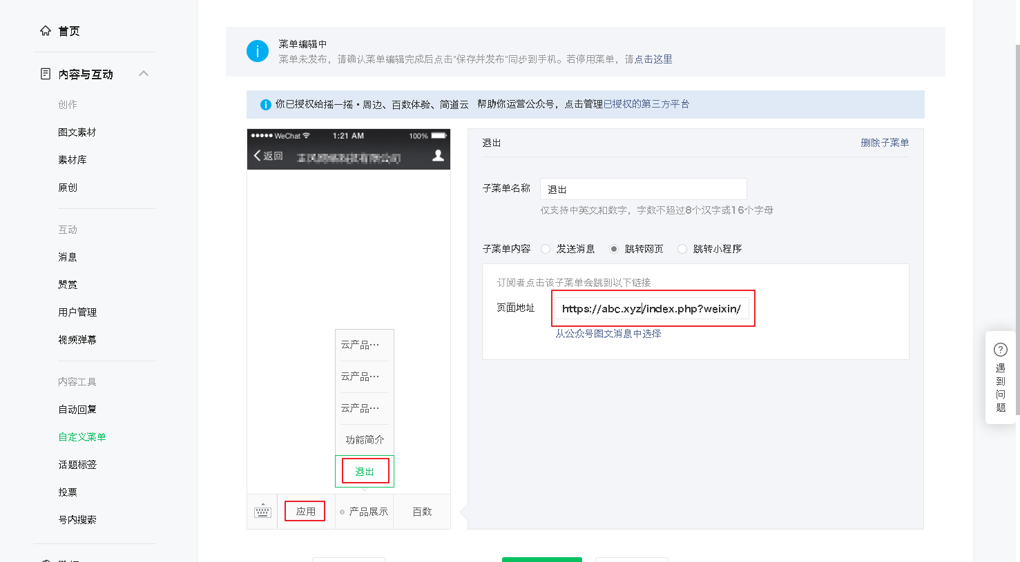 应用 https://私有云域名/index.php?cloudappmanage/wxmeau
