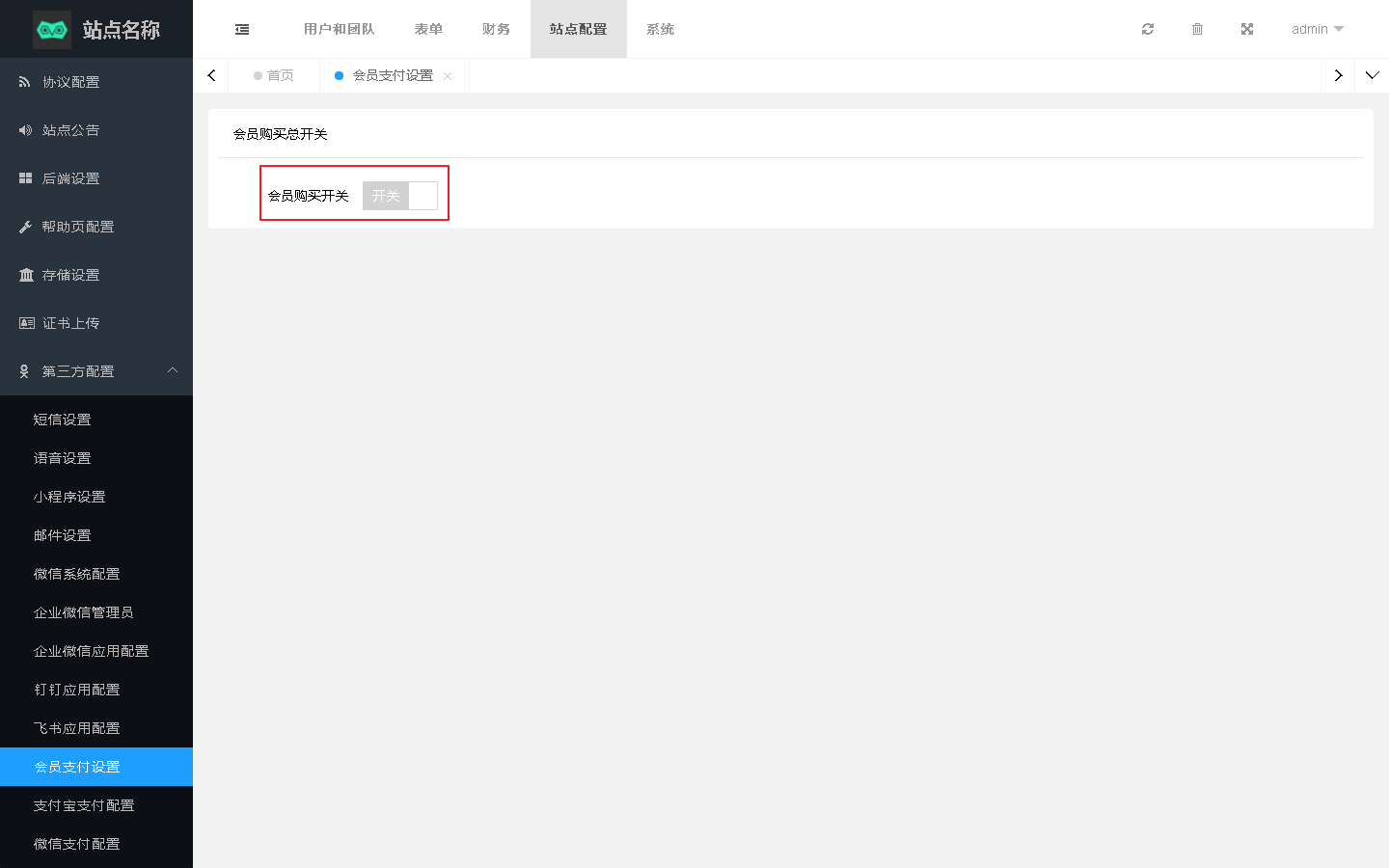 后台会员支付开关默认关闭,管理员可在后台手动开启。