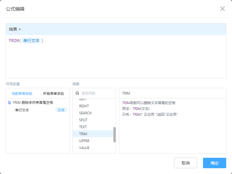 视图/助手/数据管理公式,公式参数为字符串类型的常量时,必须用英文