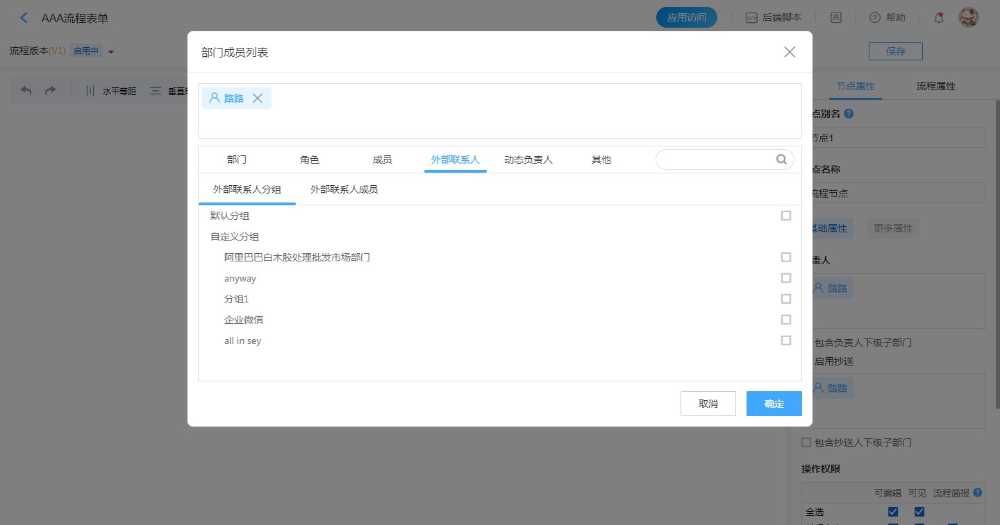 可以将外部联系人设置流程负责人、抄送人、转交人等,接收流程消息并处理流程。
