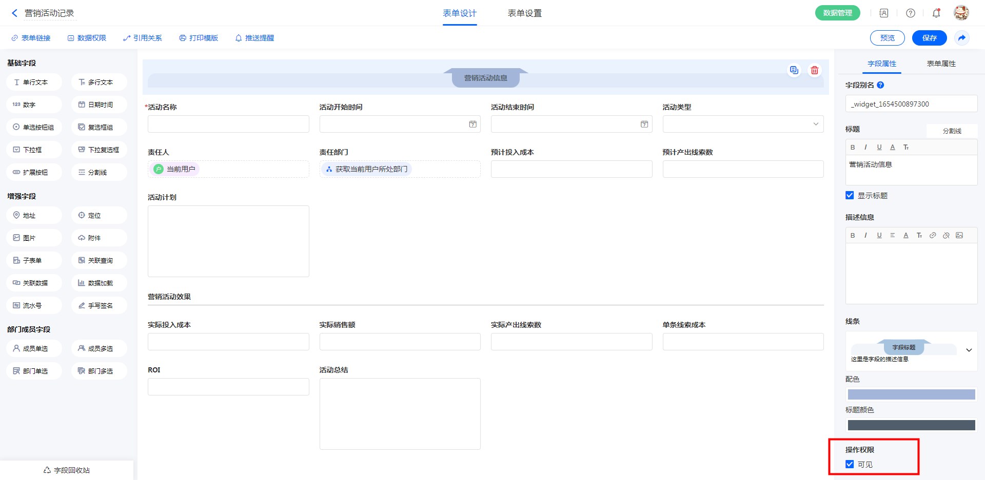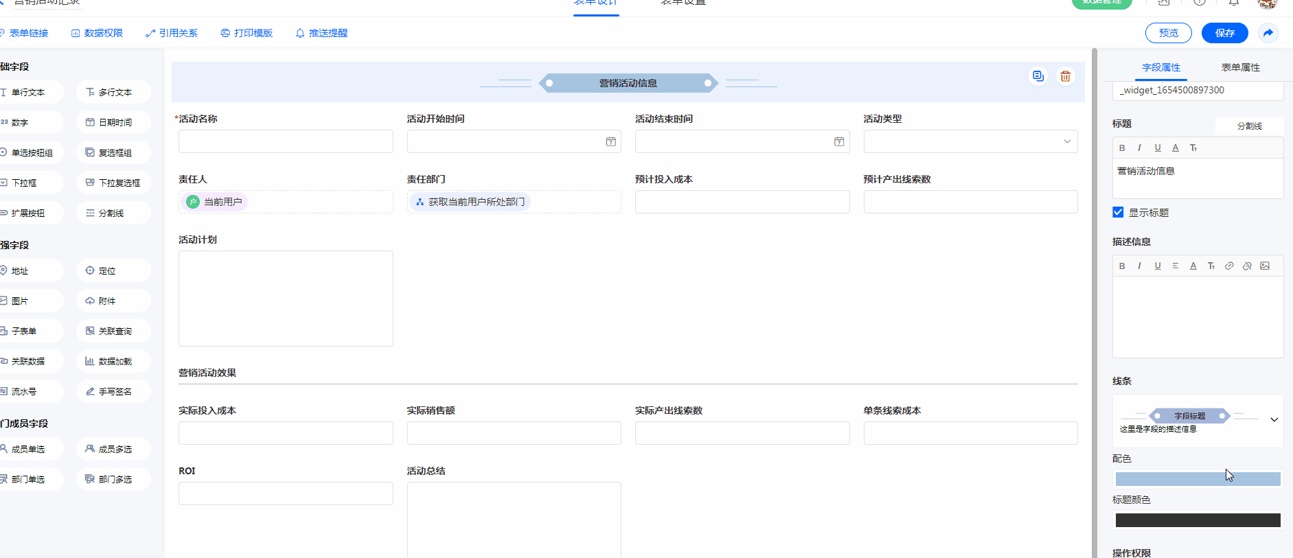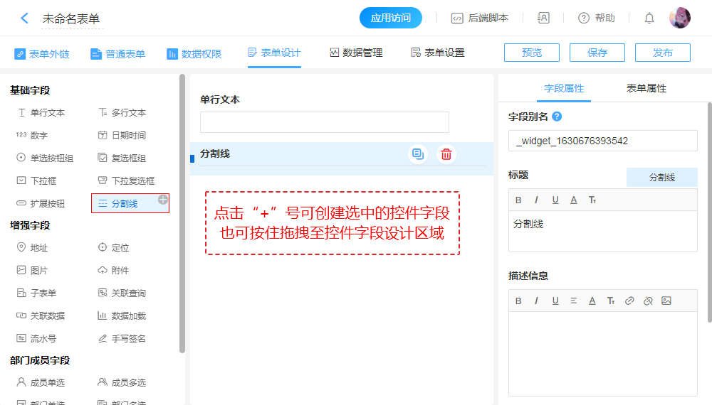 字段创建、表单预览