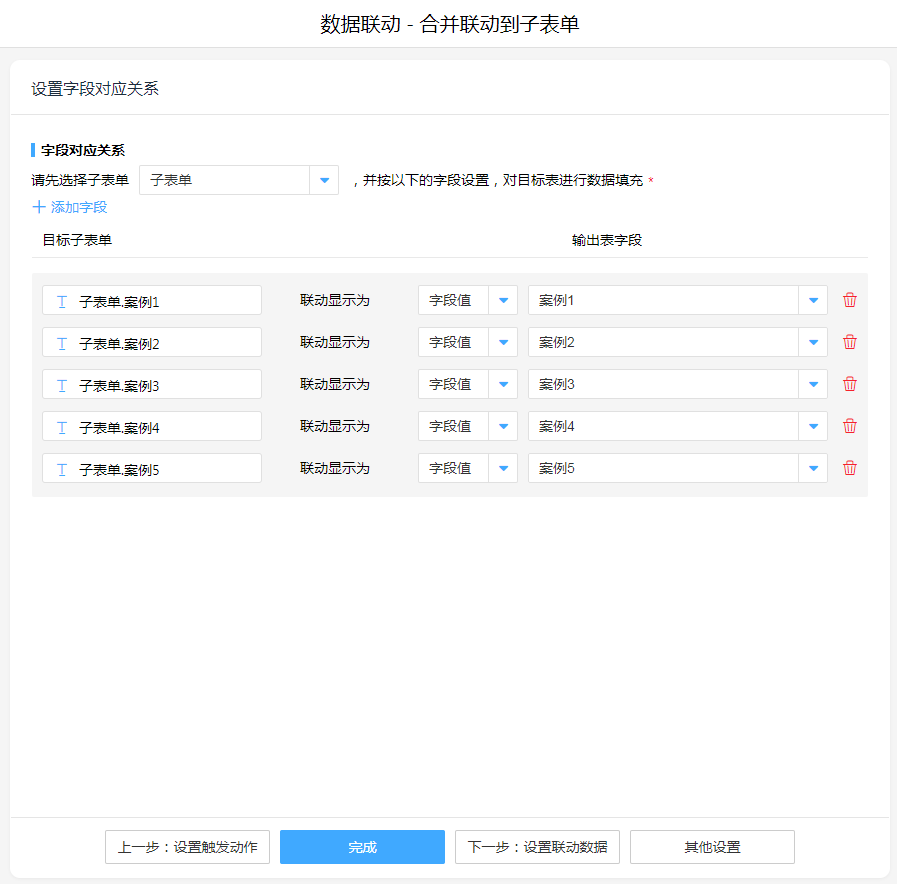 • 子表单批量联动