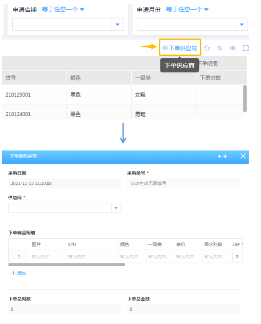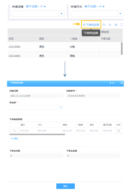 在系统后台,能够清晰的追踪店铺和供应商下单的明细数据,在店铺下单明细列表中可以直接选择下单到供应商,减少多表重复切换,提高操作效率。