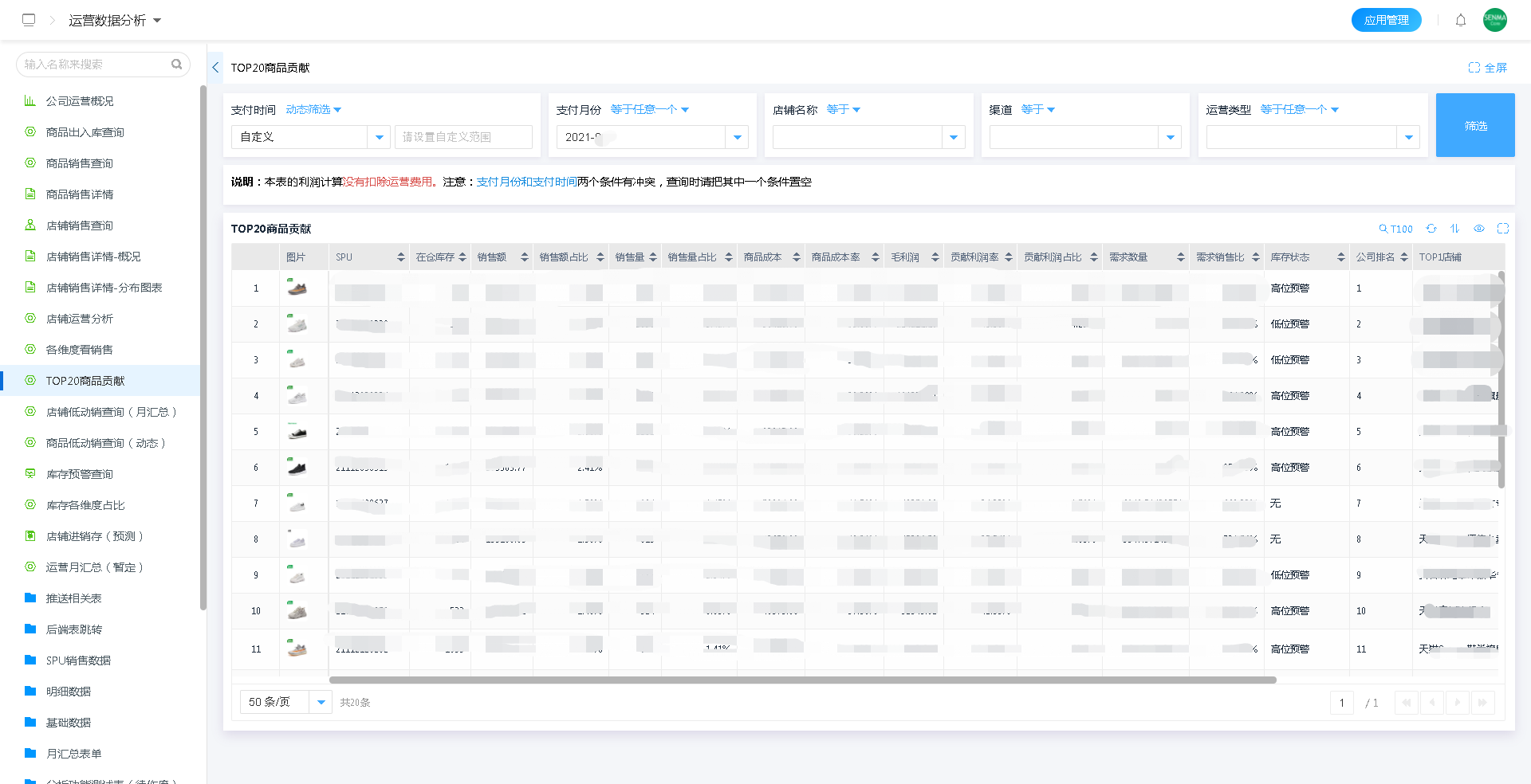 通过使用重深平台强大的计算能力,对商品销售数据的分析,在千万级的基础数据中计算出TOP20商品贡献的商品,有助于企业在后续的运营、推广等环节针对性的做出正确的决策。