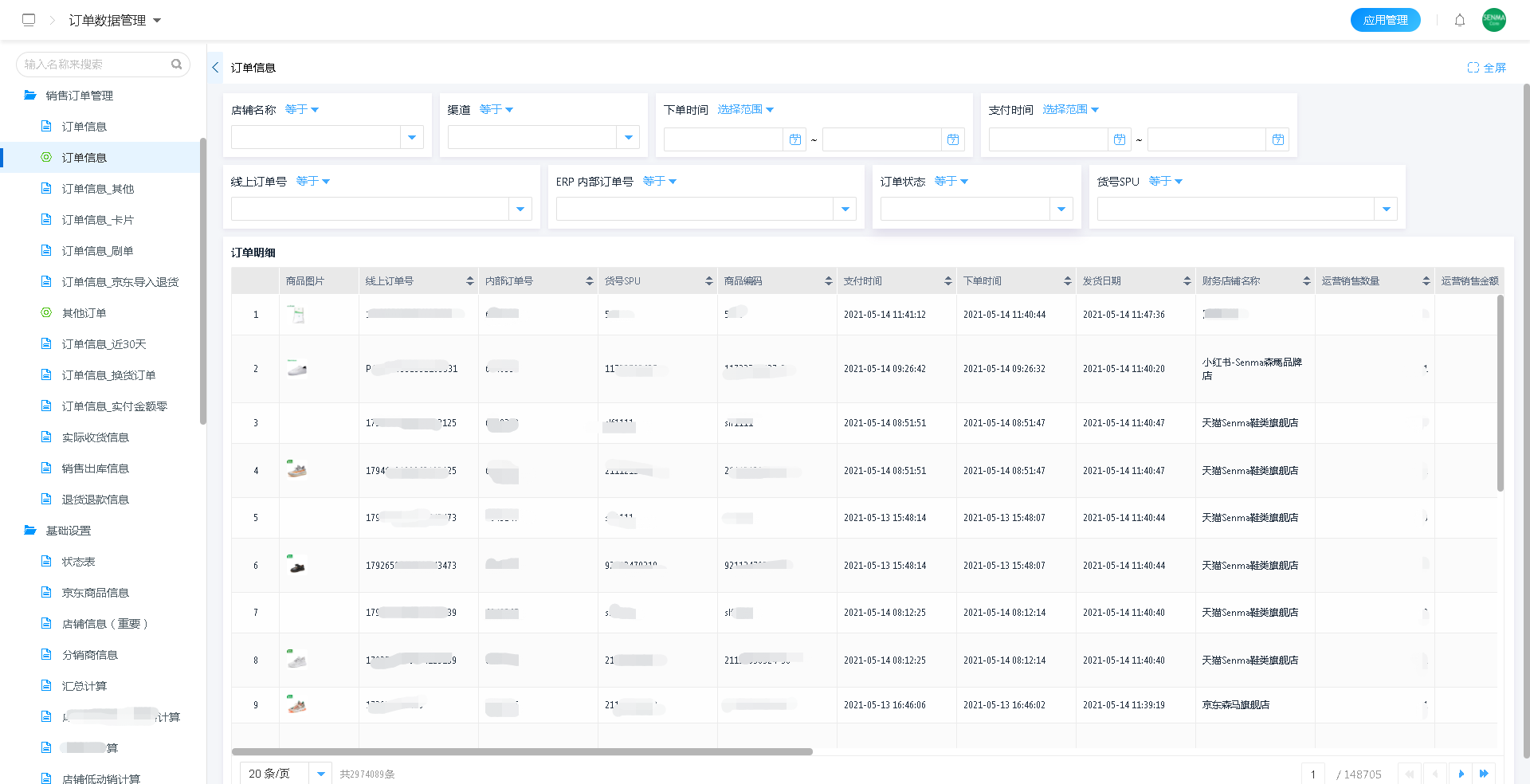 通过对接重深平台和聚水潭,在聚水潭上积累的海量订单数据及仓储数据接入重深平台后,即可在重深平台里实现数据的查看、管理。