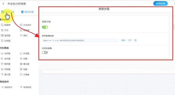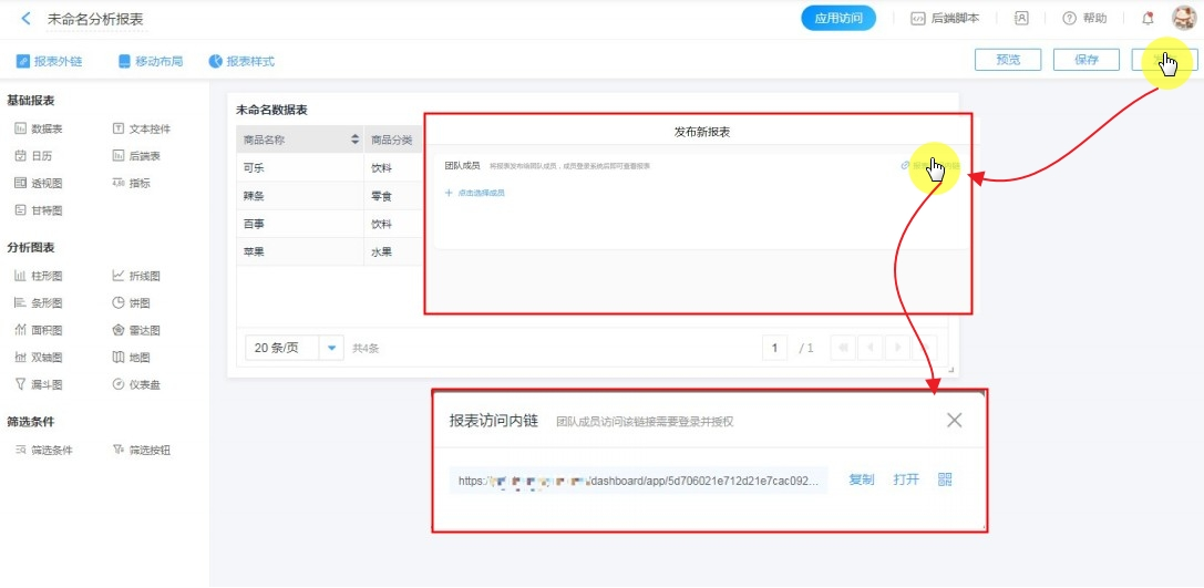 分享给团队成员:只需发布新报表,成员即可通过报表访问内链访问报表。