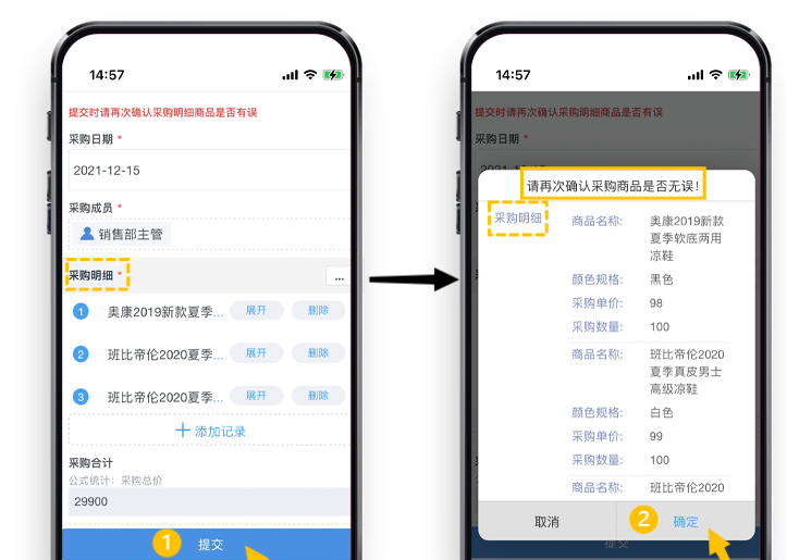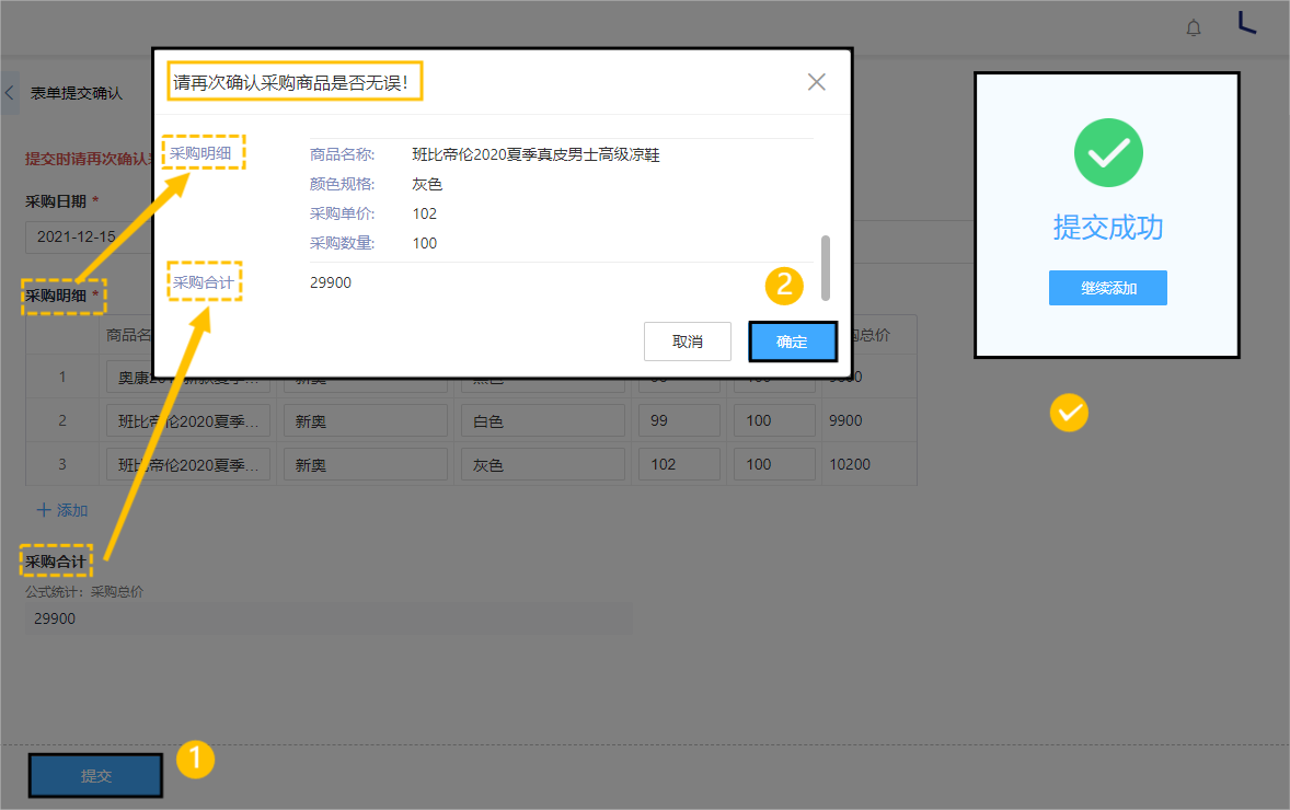 *如采购商品填写商品信息的明细、价格核对,提交保存时候的再次确认。