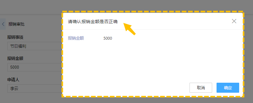 针对不同的业务场景可以自定义提示的内容,比如提前告知易误操作、提交错误内容等,让操作者主动去确认输入的重要数据无误。