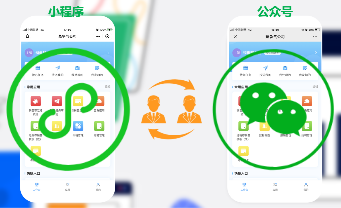 随着业务的复杂性增加,用户对重深的使用深度也在不断增强,除了在PC端的使用外,也可以通过与微信绑定的方式在微信公众号与微信小程序中同步使用,进行重深业务协作。