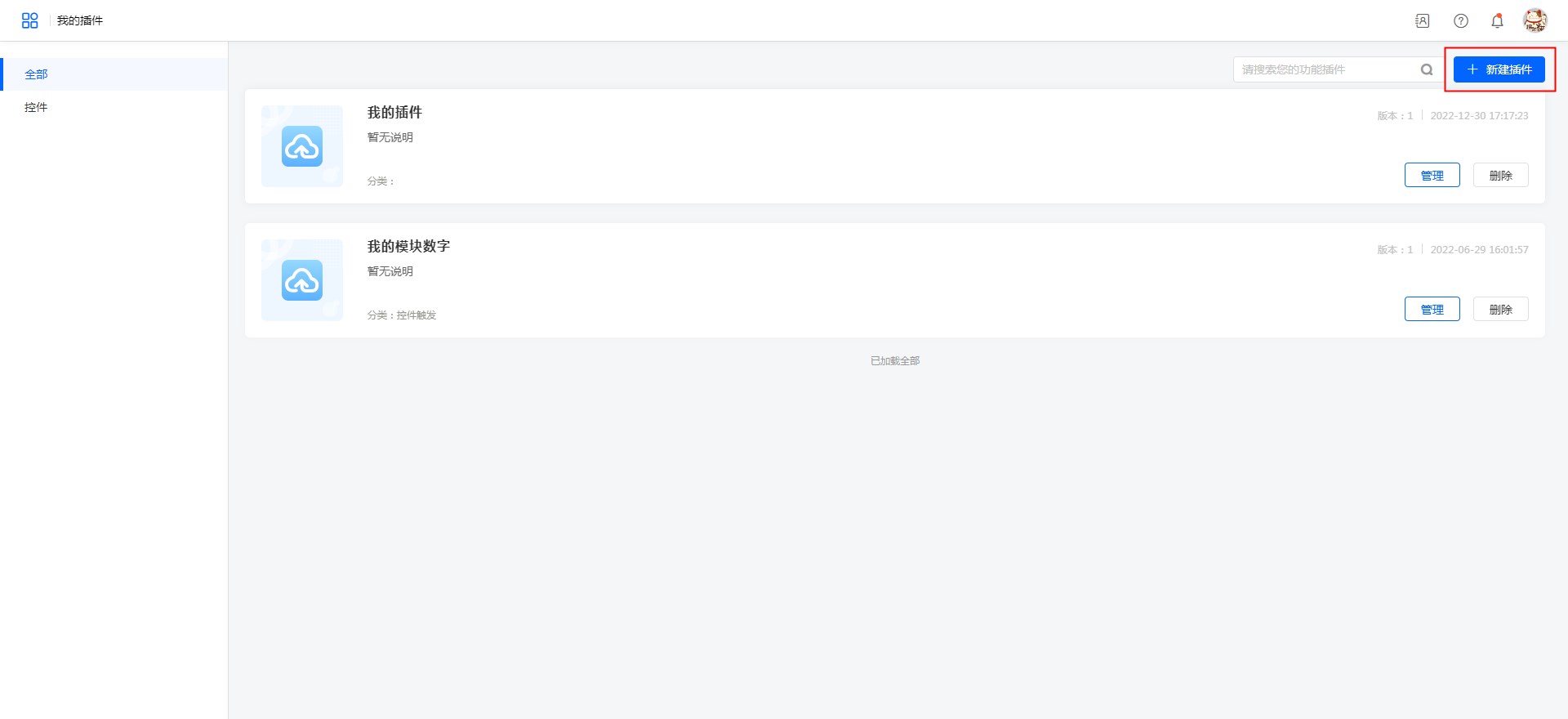 我的插件中仅展示当前账号个体自行设计的功能插件,仅当前个人可见可使用。