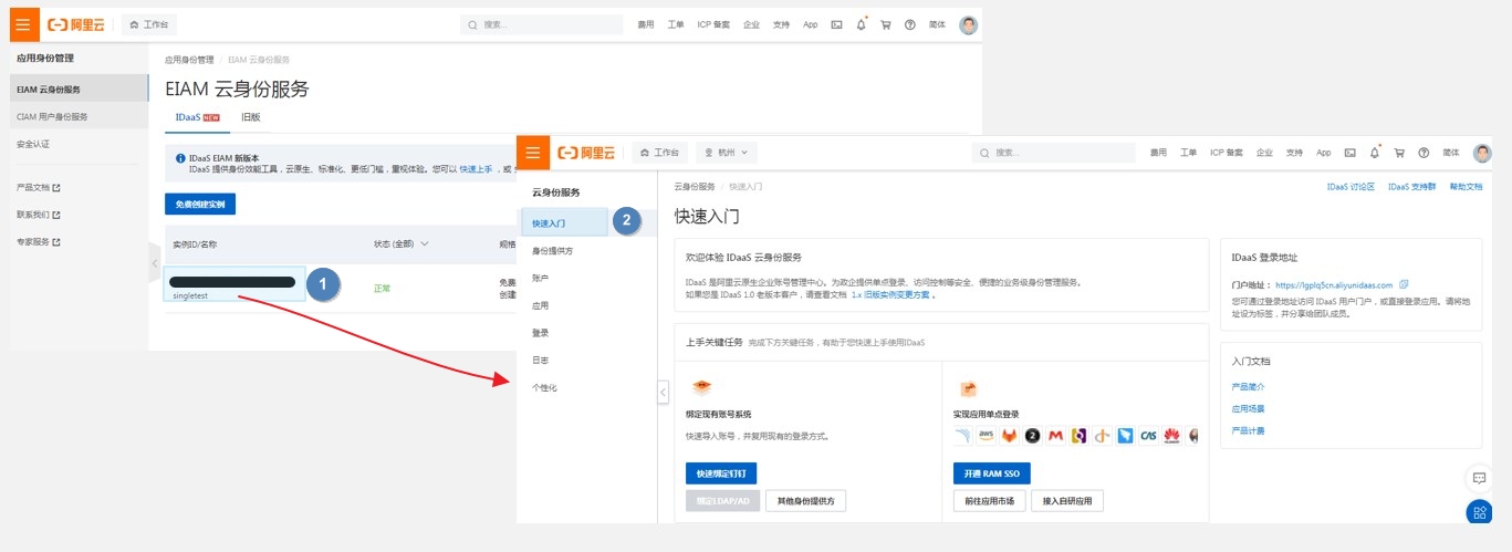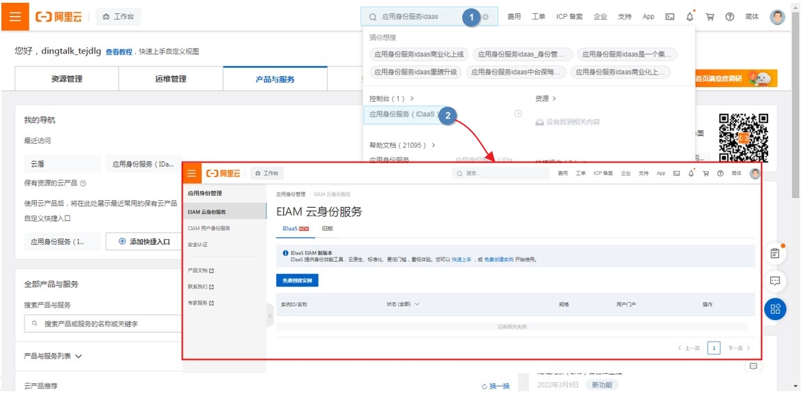 (1).登录阿里云管理后台(无阿里云账号的需要先注册),搜索并进入应用身份服务(IDaaS)。