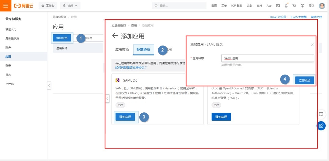 1.在阿里云IDaaS中创建SAML应用