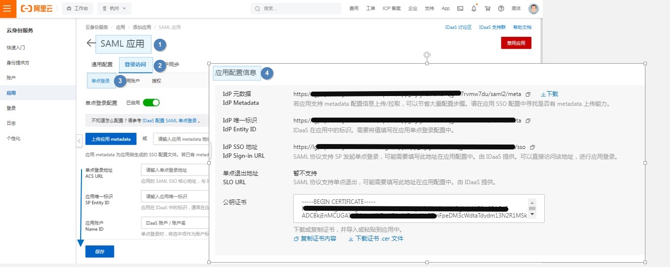 • 1.在阿里云IDaaS中创建SAML应用