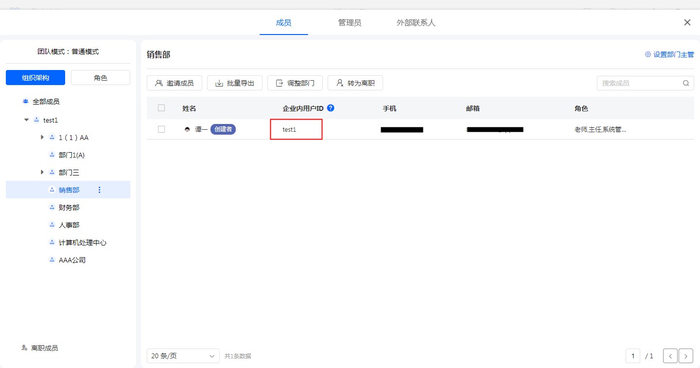 在要登录的团队通讯录中找不到企业内唯一id和username一致的成员