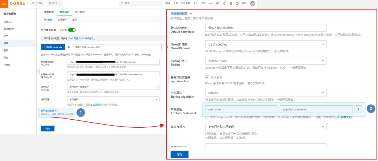 • 3.1 配置阿里云中单点登录