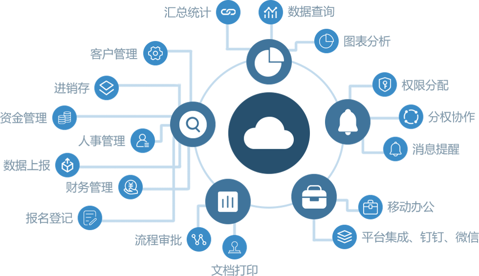 重深的系统架构为了保证后期的可扩展性,在安全体系和权限体系可控的保证下,对各主流平台都提供了对接能力。选择重深私有化部署,平台强大的功能体系能够帮助你实现全业务流程数字化运转,无需跳转多个协作办公平台,在重深就能实现一站式办公。