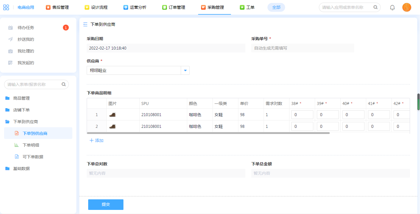 2.平台下单到供应商