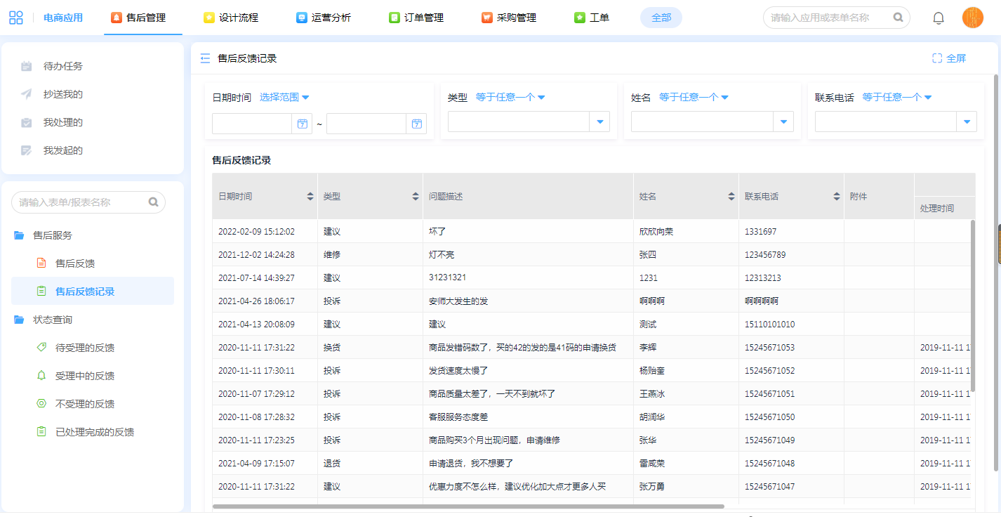 1.售后反馈记录查询