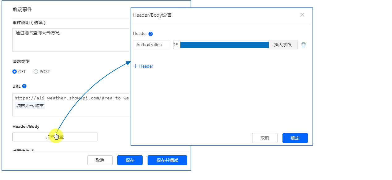 根据阿里云接口的介绍,可得到接口的请求类型和URL,我们可以按以下内容填入: