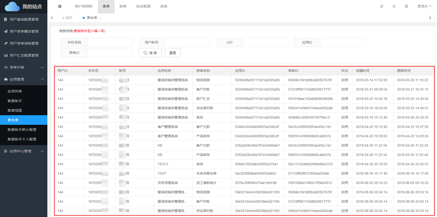 聚合表主要功能是对接多表数据,进行加减运算,其计算结果生成一张虚拟表数据,可提供其他表联动调用,在聚合表的列表中,可以查看所有的聚合表。