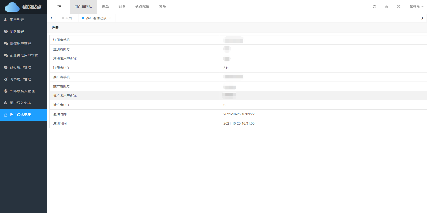 • 邀请时间:推广者邀请时间