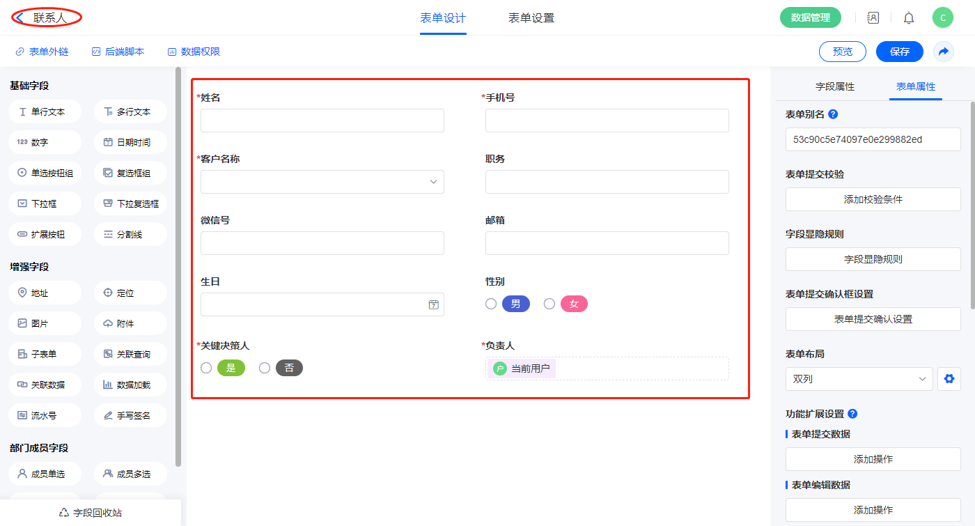 客户联系人 单行文本