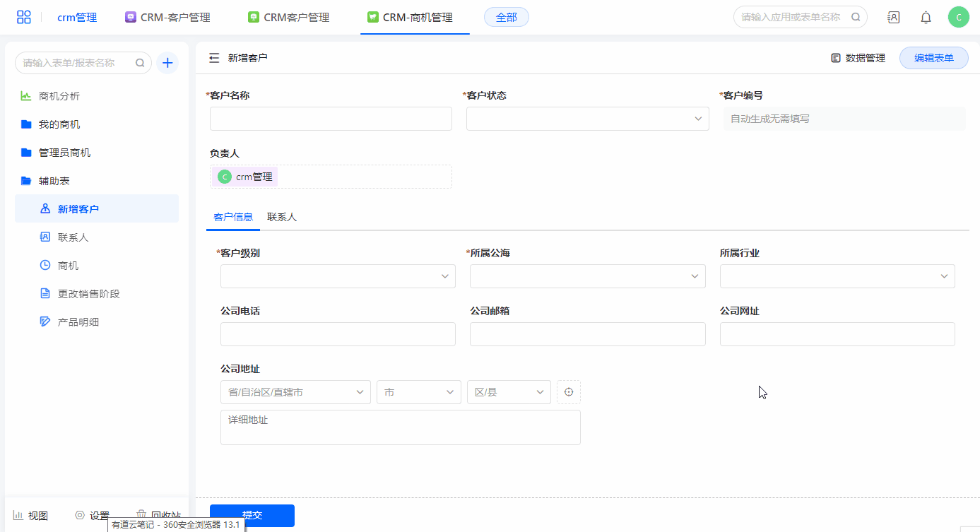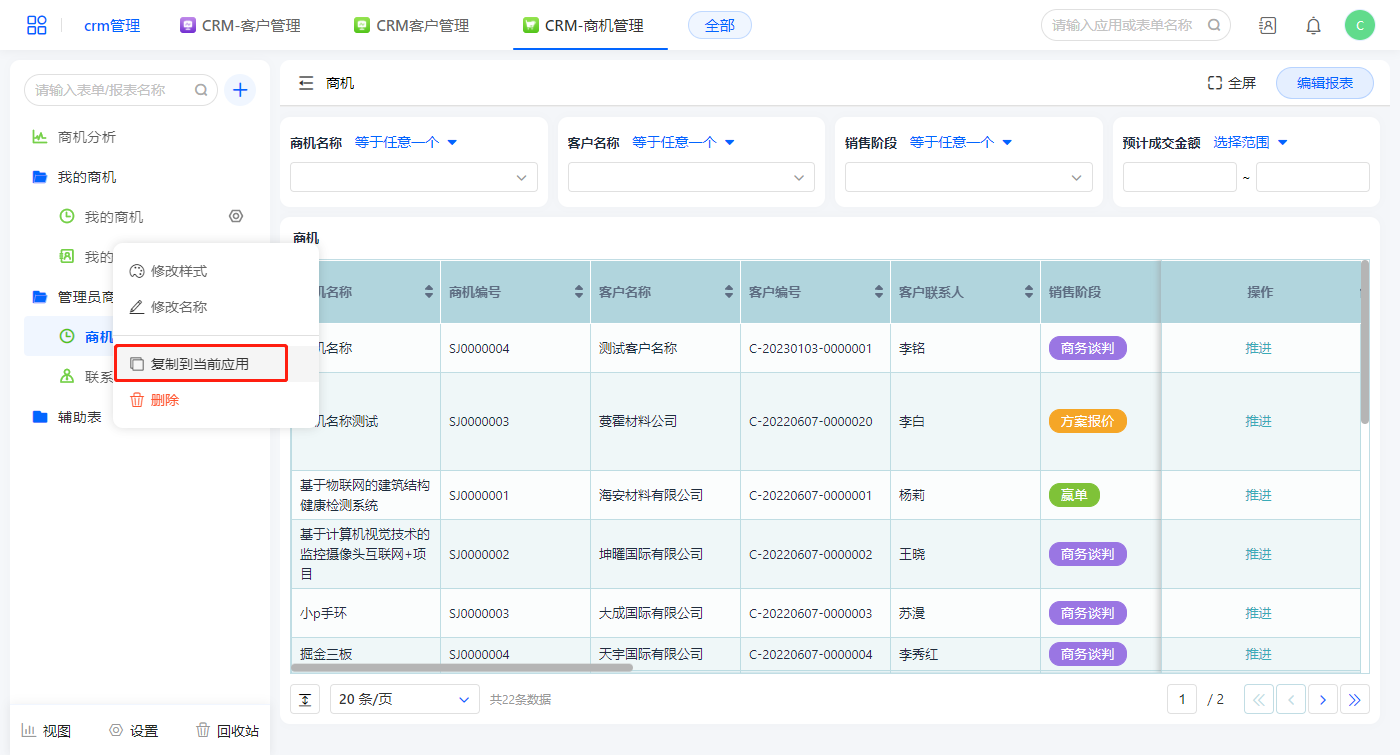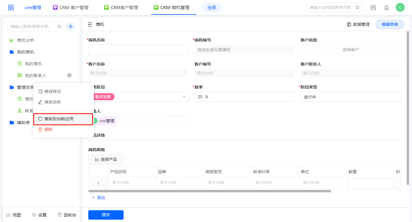 • CRM-商机管理demo应用详情