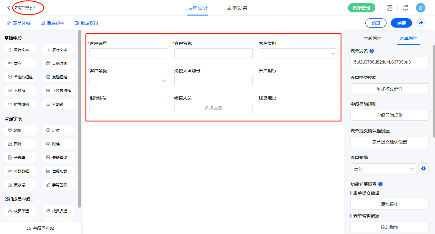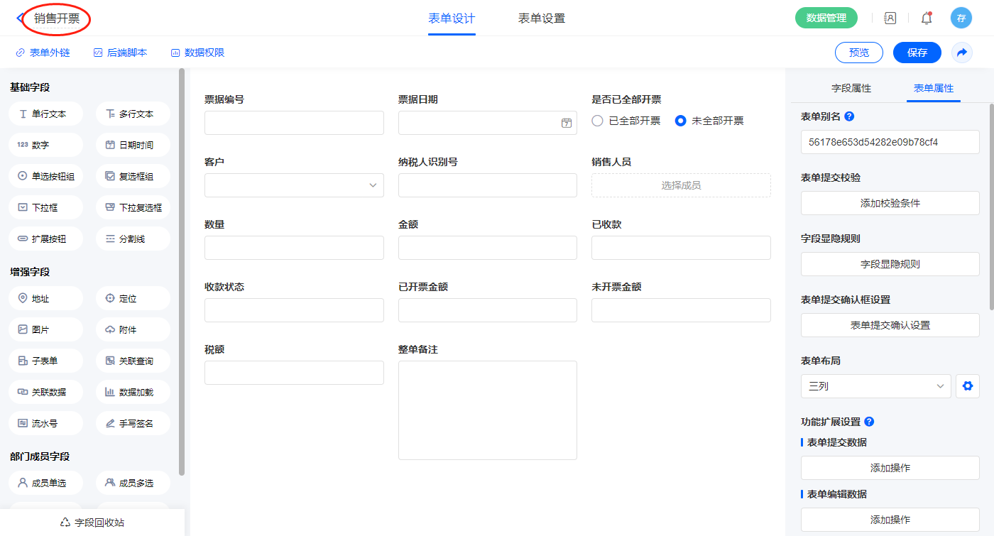 2.12、表单【销售开票记录表】字段及表单属性设置