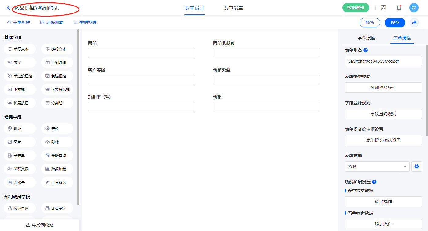 2.11、表单【商品管理】字段及表单属性设置