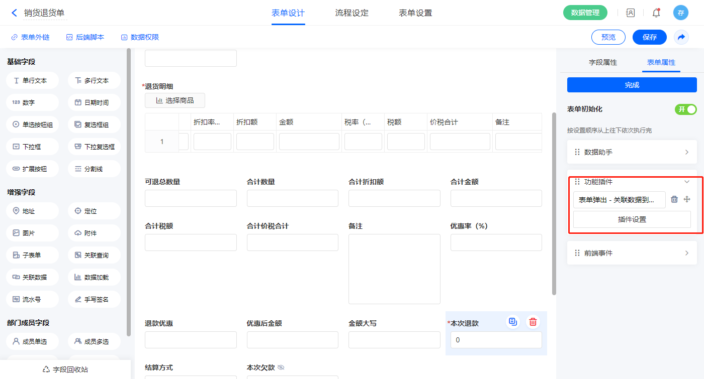 2)表单初始化新增功能模块【表单弹出-关联数据到子表单】;