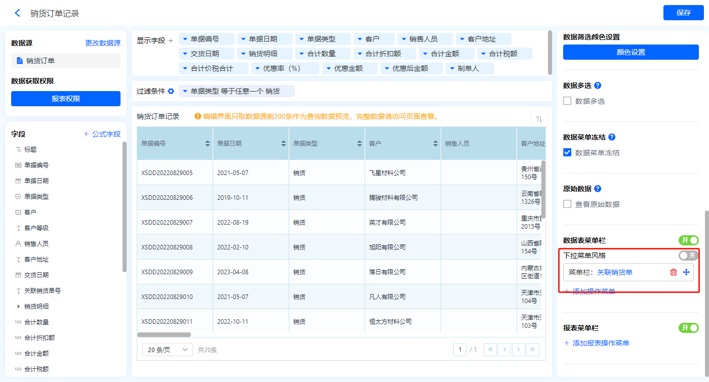 2)新增数据表菜单栏,【关联销货单】;