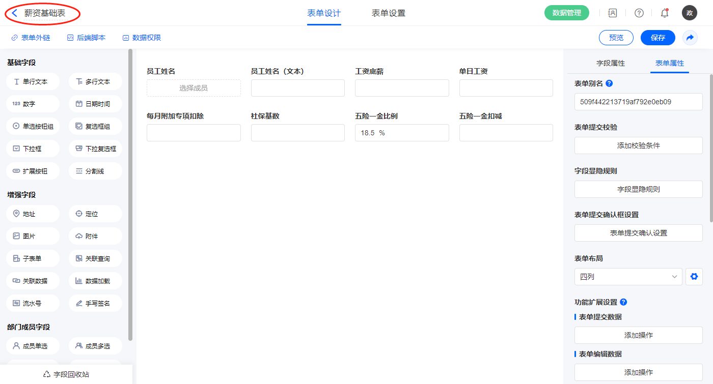 • 2.5、表单【薪资基础表】字段及表单属性设置