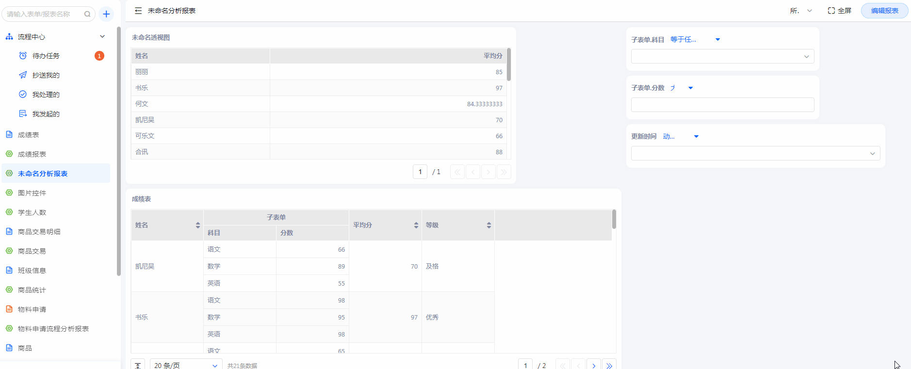 • 筛选子表单数据到普通字段