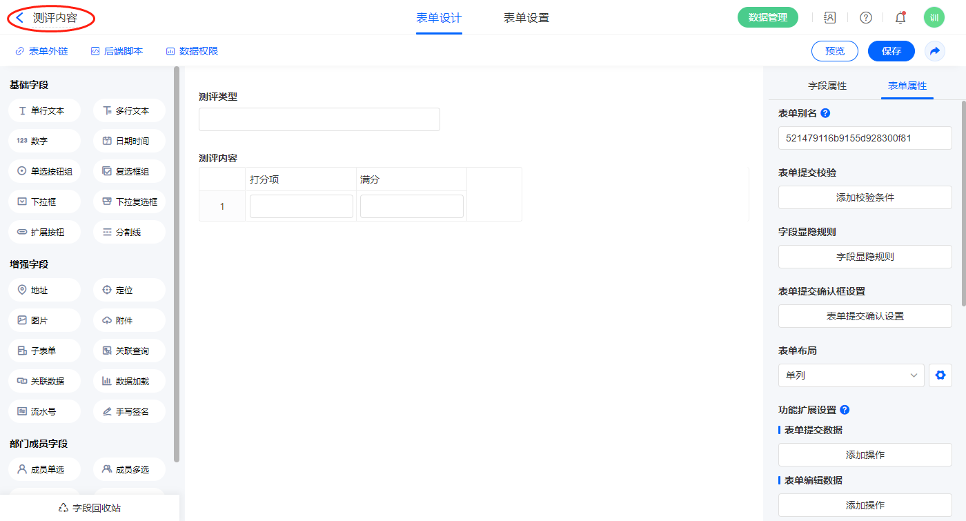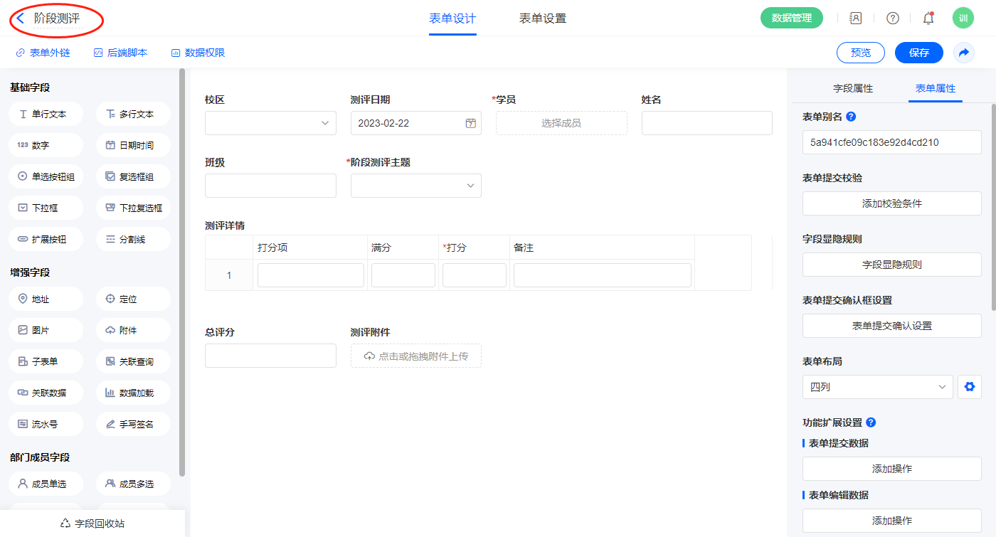 2.4、表单【阶段测评】字段及表单属性设置