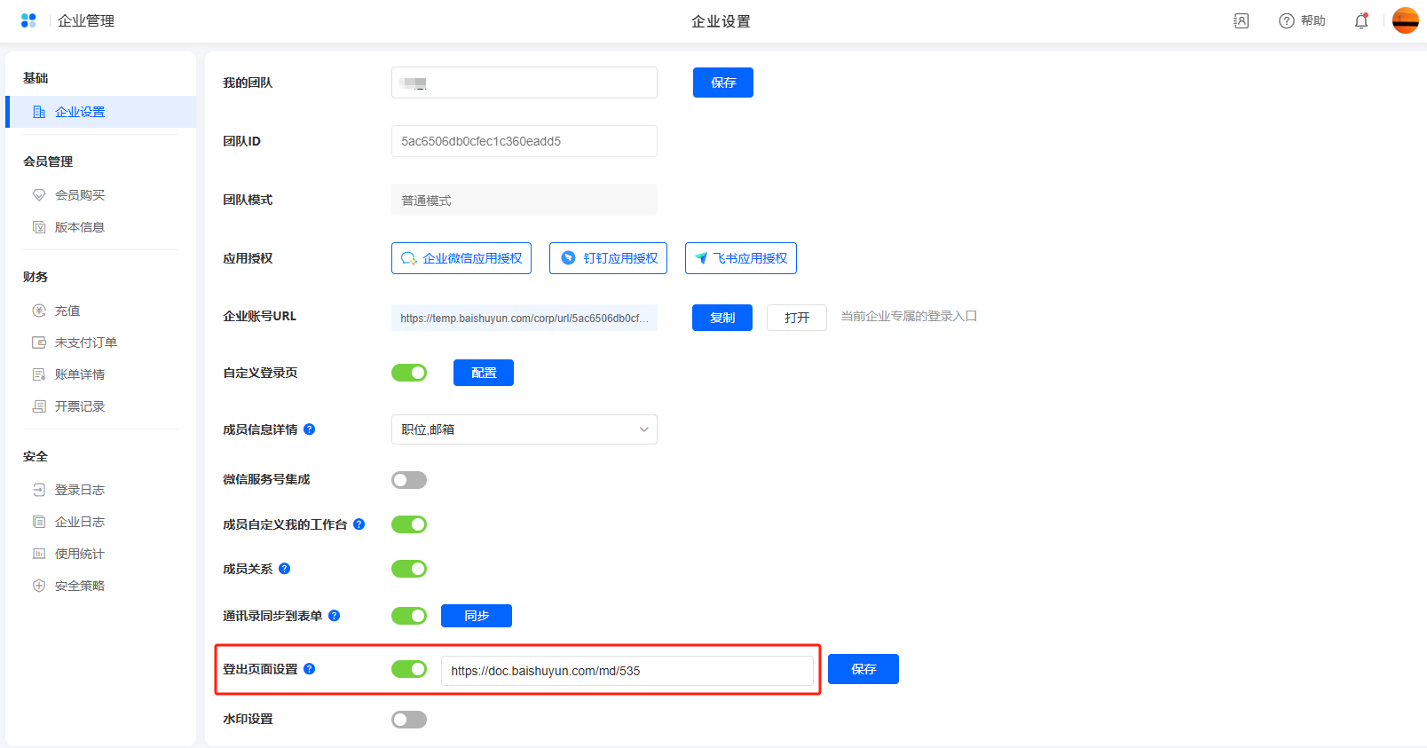 - 团队自己可以在企业管理,设置自己团队下的退出指定链接。