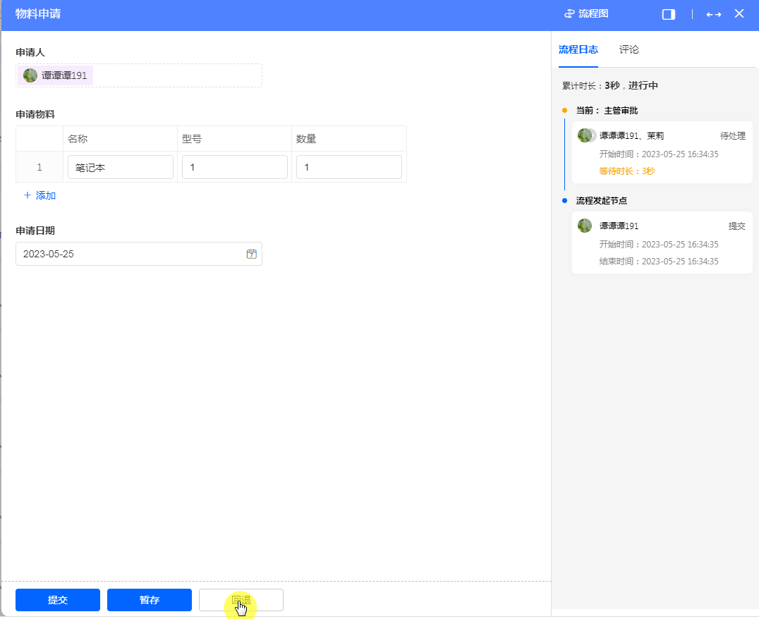 流程审批中,发现提交的资料不全、有误或不符合要求时,需要回退流程,让流转过的节点负责人补充资料或重新制作。