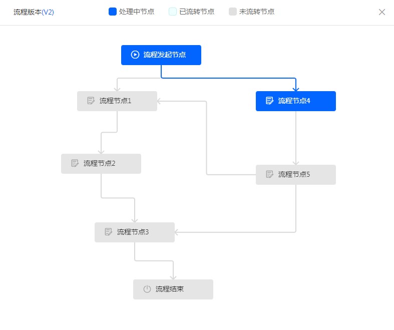 3) 如节点负责人操作「转交」/「加签」后,由被转交人/被加签人「回退」,重新提交至当前节点时,将流转至原节点负责人。