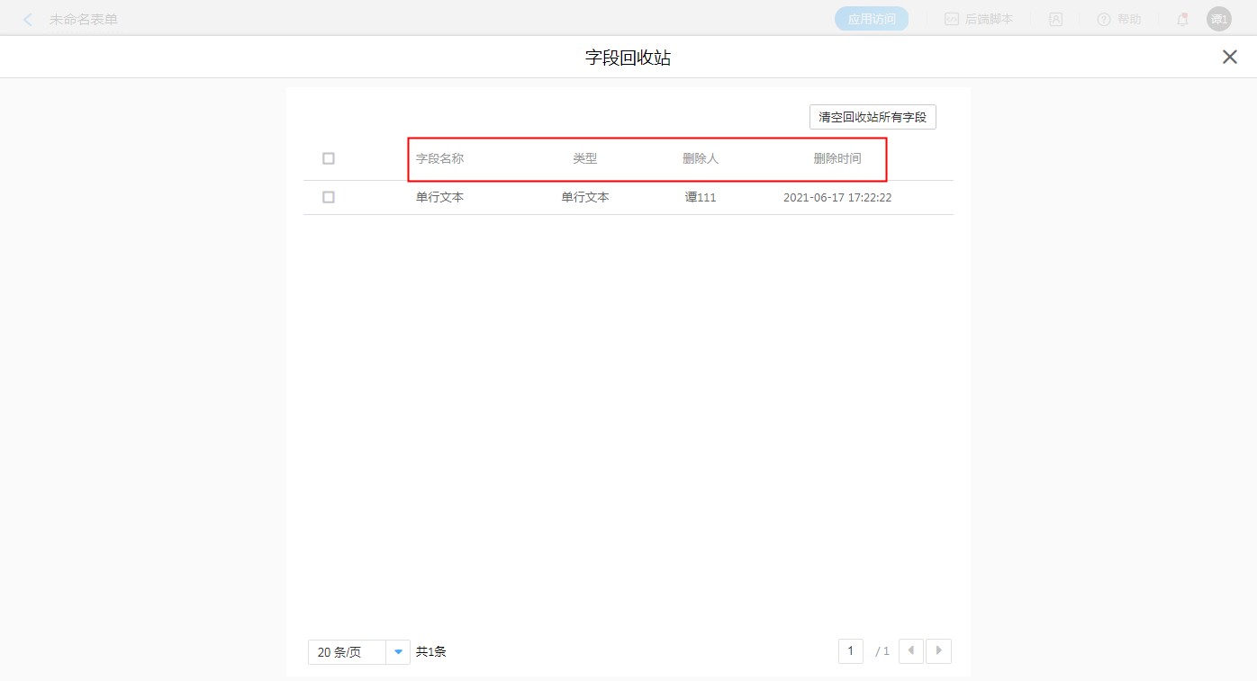 • 清空回收站所有字段