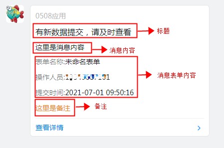 - 消息内容:支持自定义文字,以及添加表单字段。