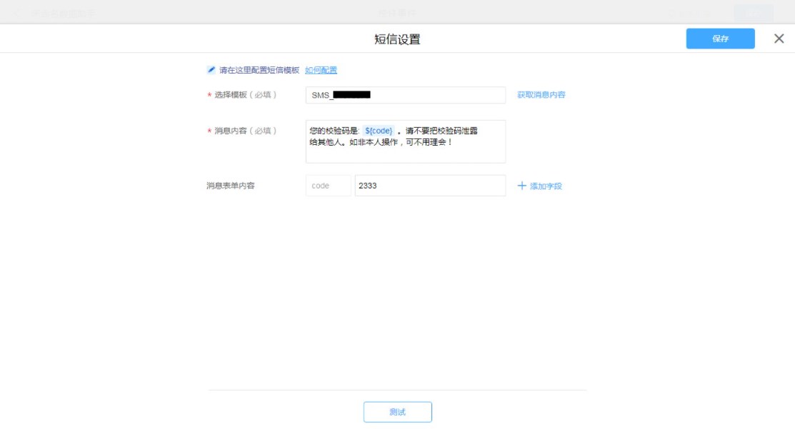普通表单设置短信消息模板