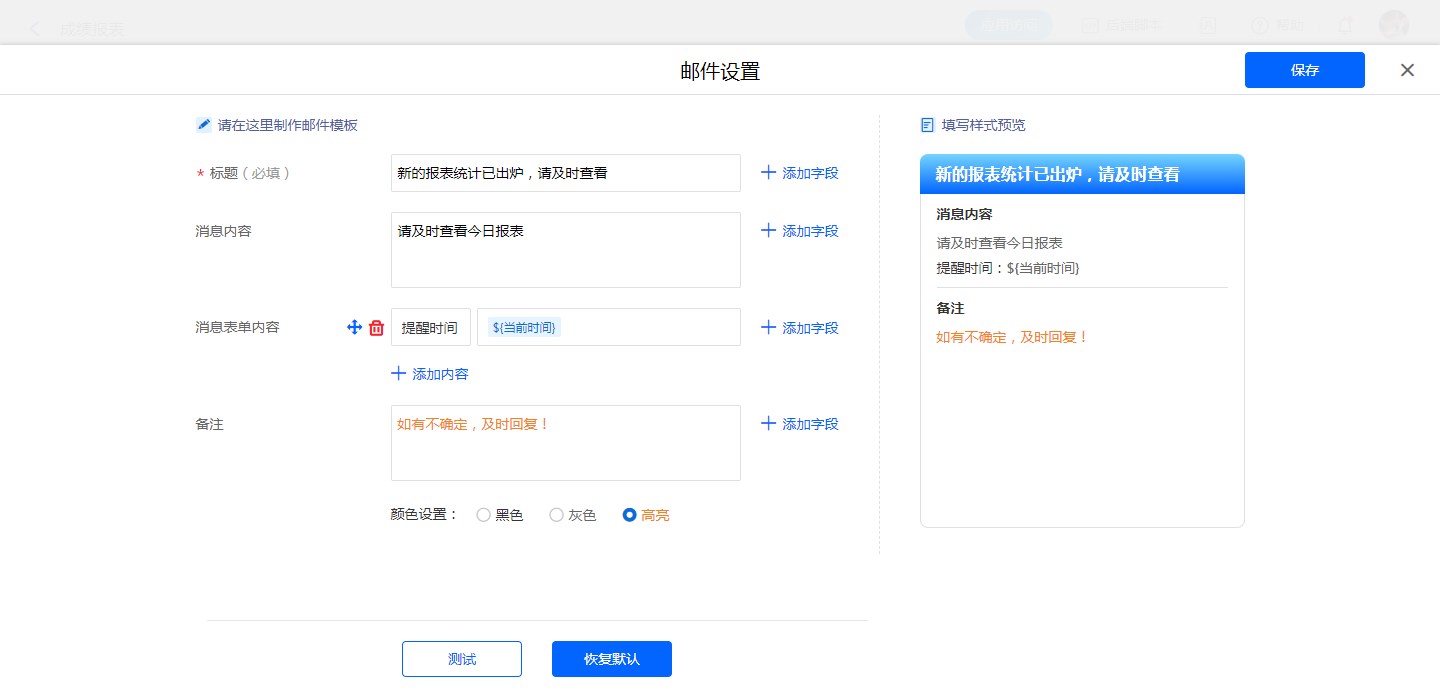 • 报表定时提醒设置邮件消息模板