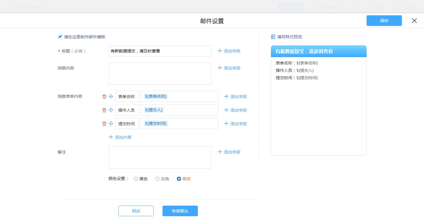 • 普通表单设置邮件消息模板