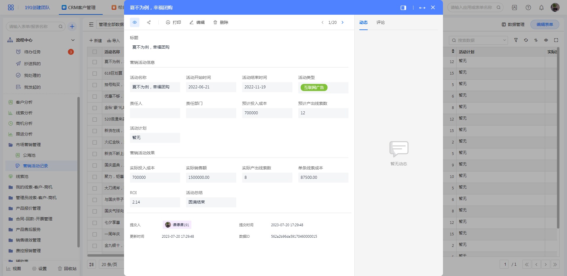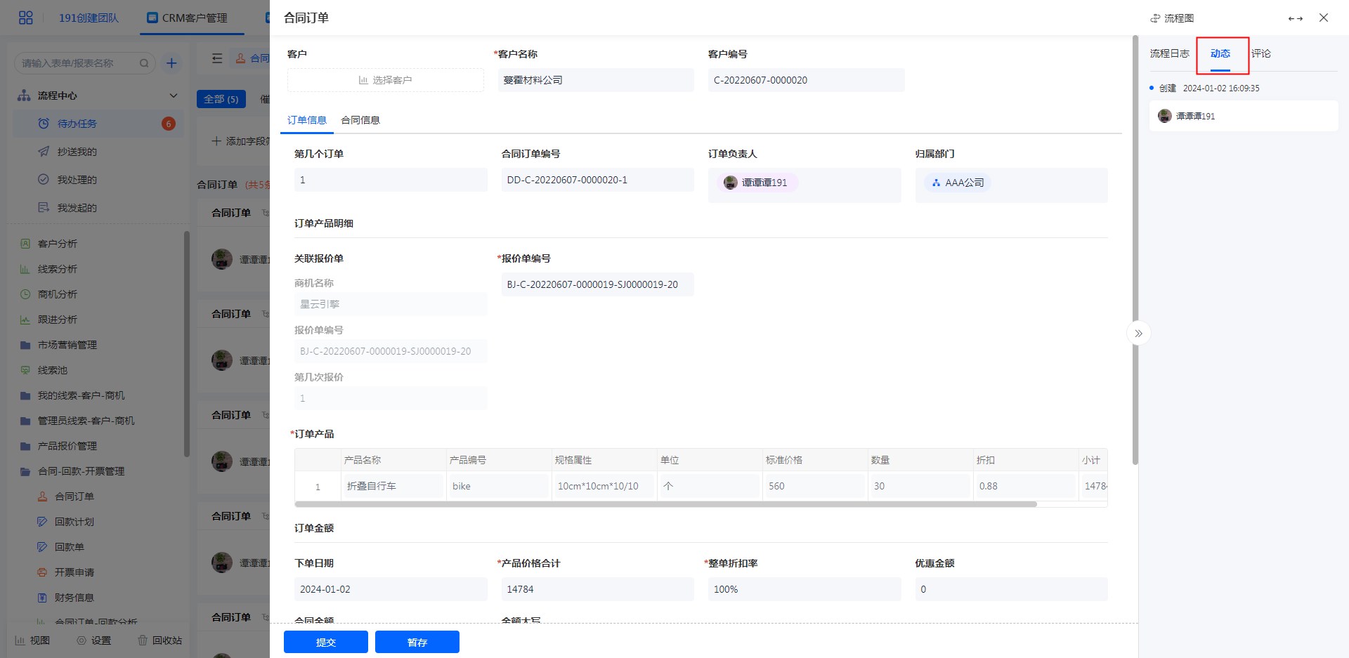 勾选此属性后,在流程中心(流程待办/抄送我的/我处理的/我发起的)查看流程页面,会显示动态。