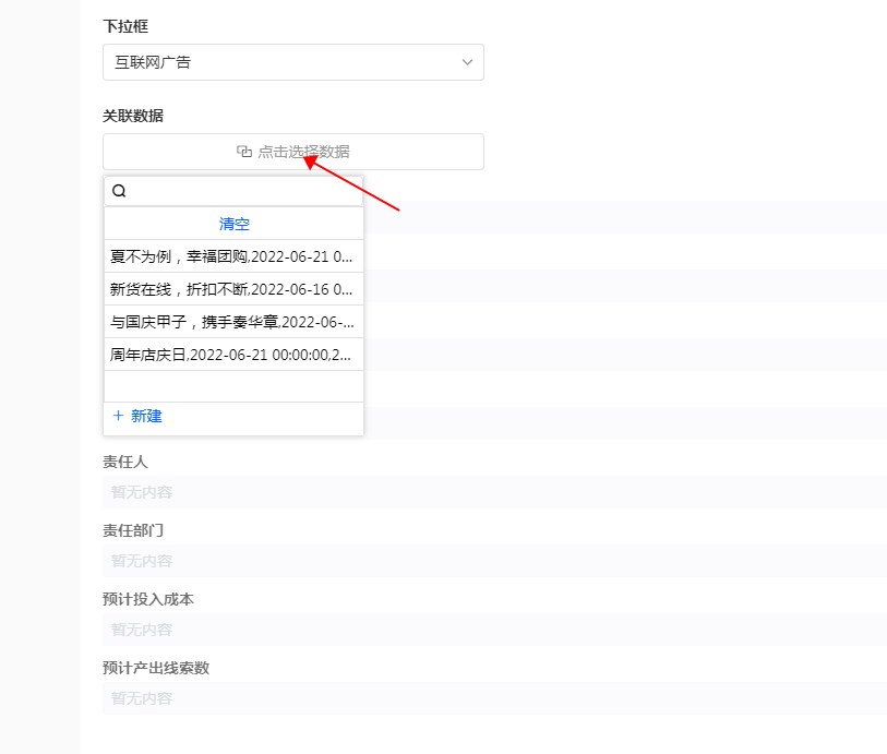 • 设置联动到值时直接展示结果(联动结果的第一条数据);设置联动到选项时将结果写入下来选项中,需要手动选择才会写入输入框。